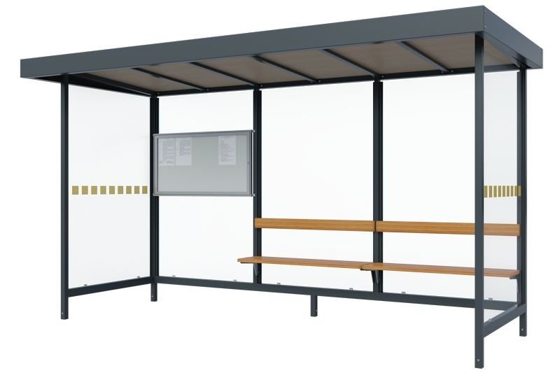 Miejsca siedzące zapewniają ławki montowane w poszczególnych segmentach . Podstawowe modele to: INOX NOVA 203, INOX NOVA 205, INOX NOVA 207. Wiata dzięki szerokiemu zadaszeniu zapewnia doskonałą ochroną podróżnych przed wiatrem, deszczem i śniegiem.